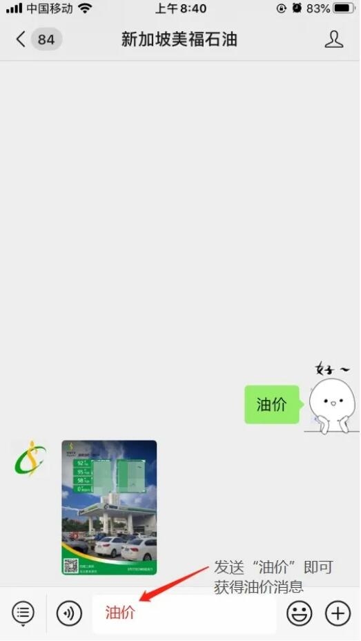 點開對話框發送“油價”即可獲得油價消息