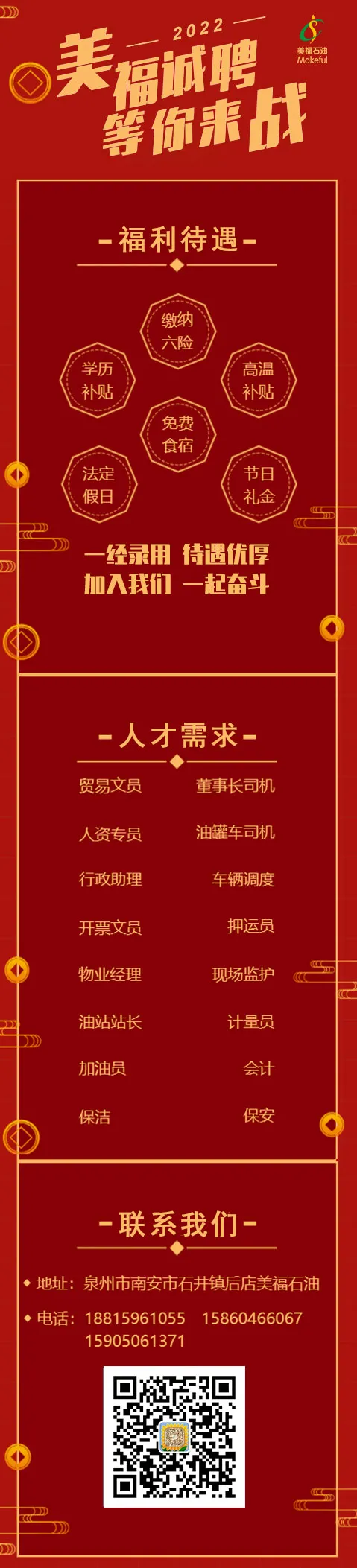 02月 春季招聘!2022年美福歡迎你加入! 美福石油 / 2022-02-18 08:08:51 銀聯(lián)客戶到美福加油有福啦!加油滿100元 立減10元2021年度優(yōu)秀員工及先進集體表彰