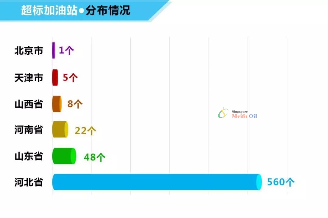 從超標加油站省際分布情況看,河北省有560個,占超標加油站總數的87%,山東省48個、河南省22個、山西省8個、天津市5個、北京市1個;從城市分布情況看,河北省張家口、秦皇島市超標加油站比例最高,約為20%。